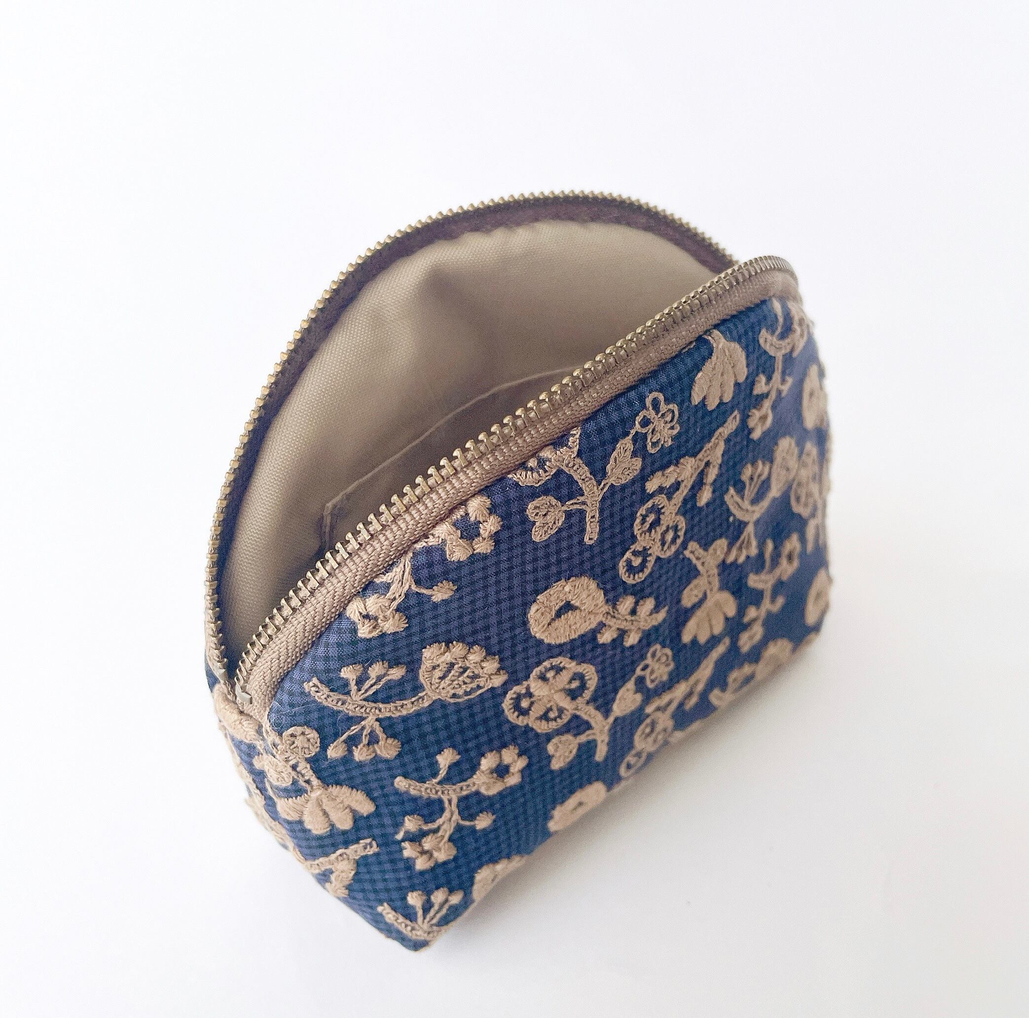 ファスナーが弧を描くかわいいポーチです。