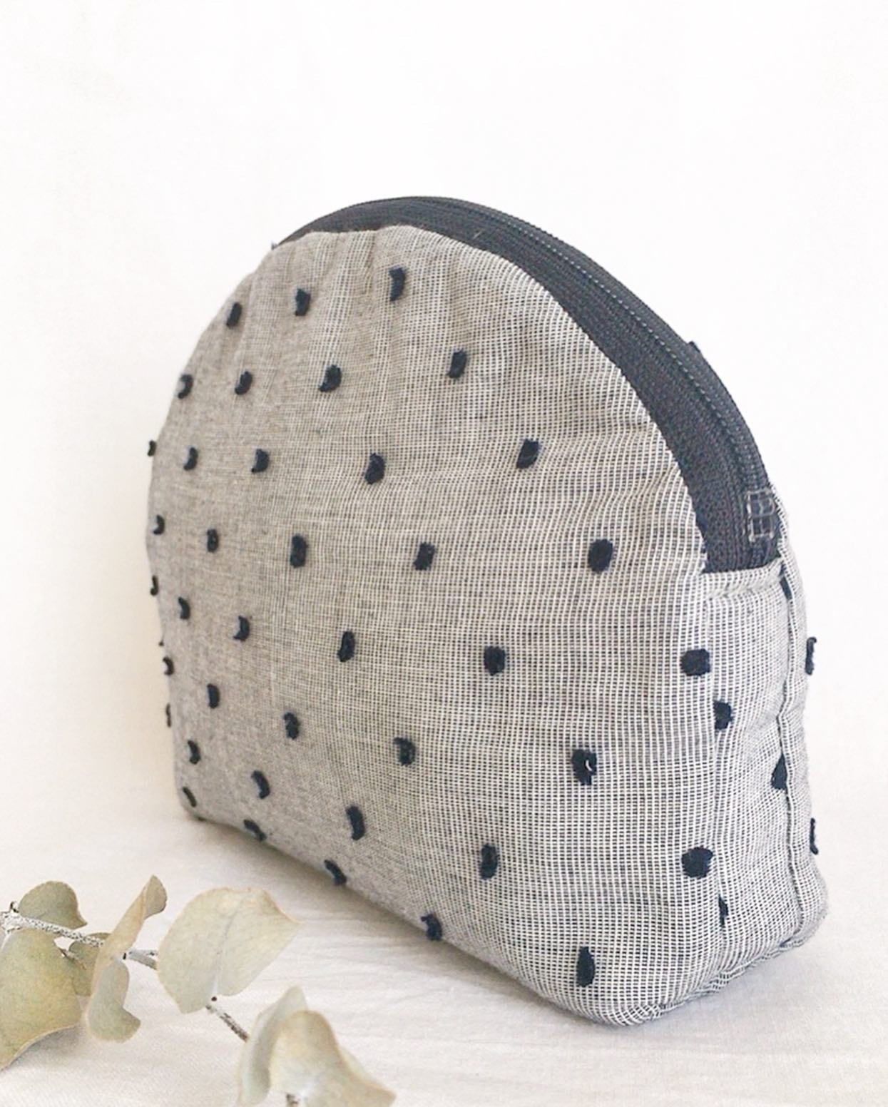 ライトグレー地にネイビーのドット刺繍生地です⑅