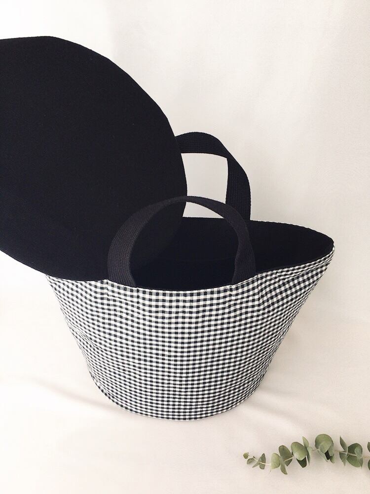 まる底トートバッグ(ブラック ギンガムチェック