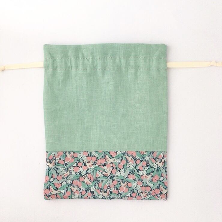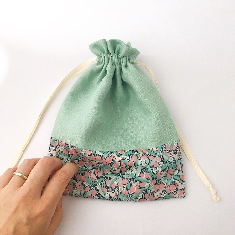 しかく巾着【S】チェリーライプ(リバティ生地)