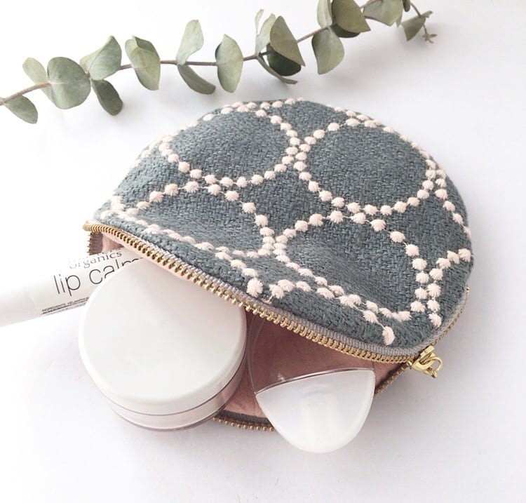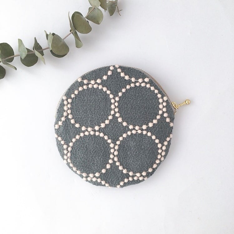 ▶︎ミナペルホネンのタンバリン(グリーングレー色)の生地を使ったまんまるのポーチです。