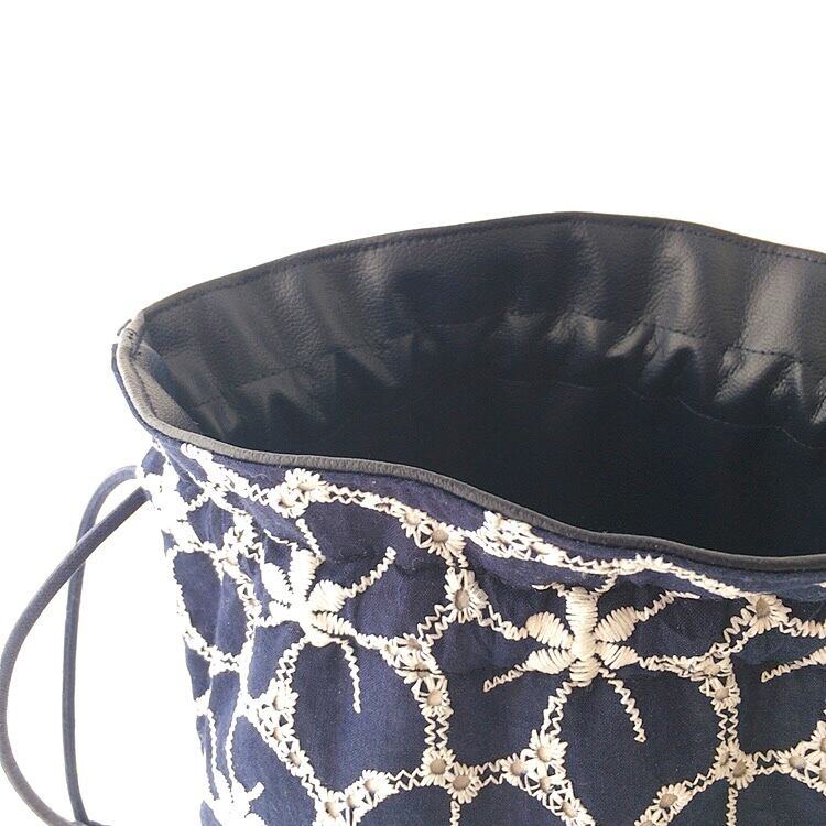 巾着を絞った時は500mlのペットボトルのフタの頭が覗くくらいの高さです。