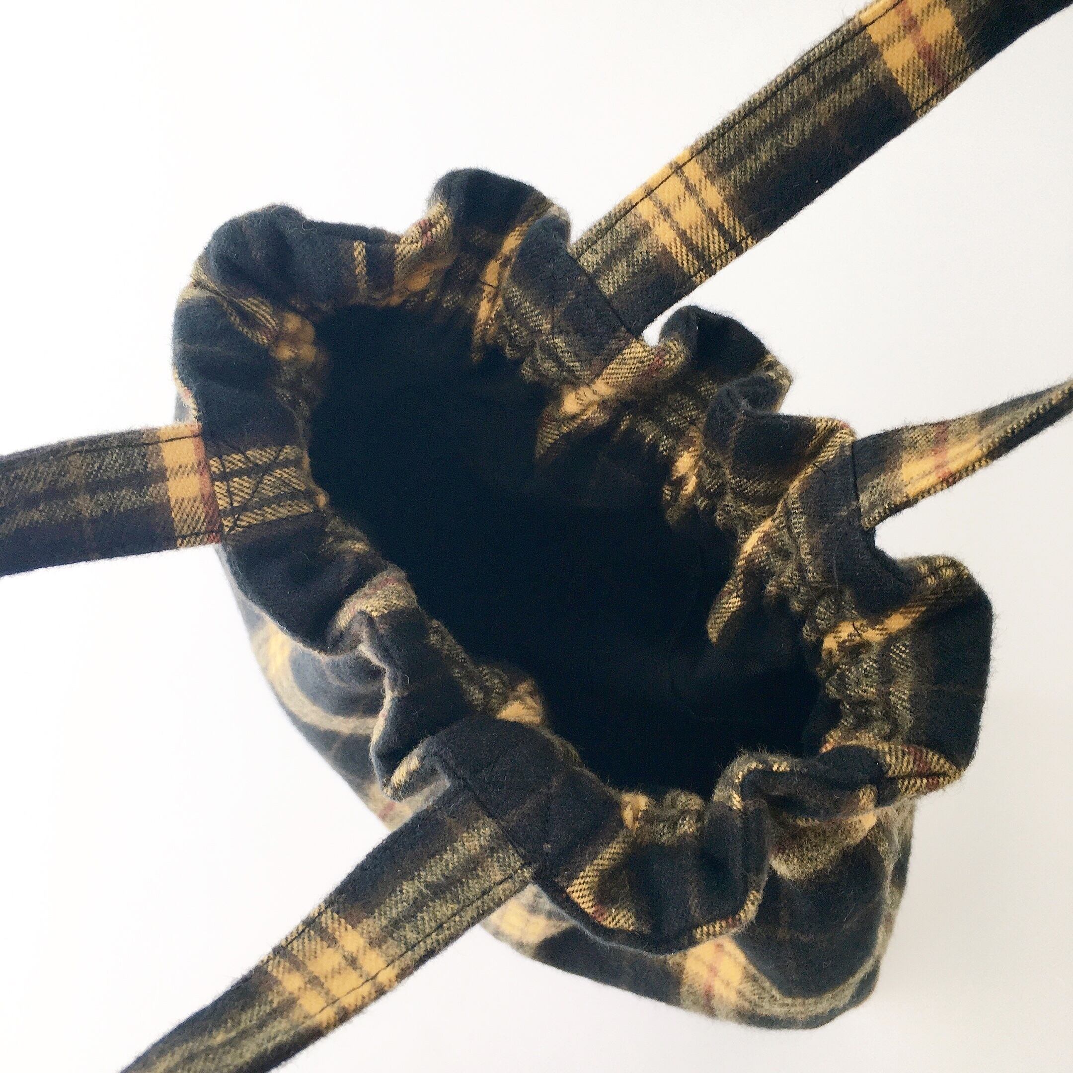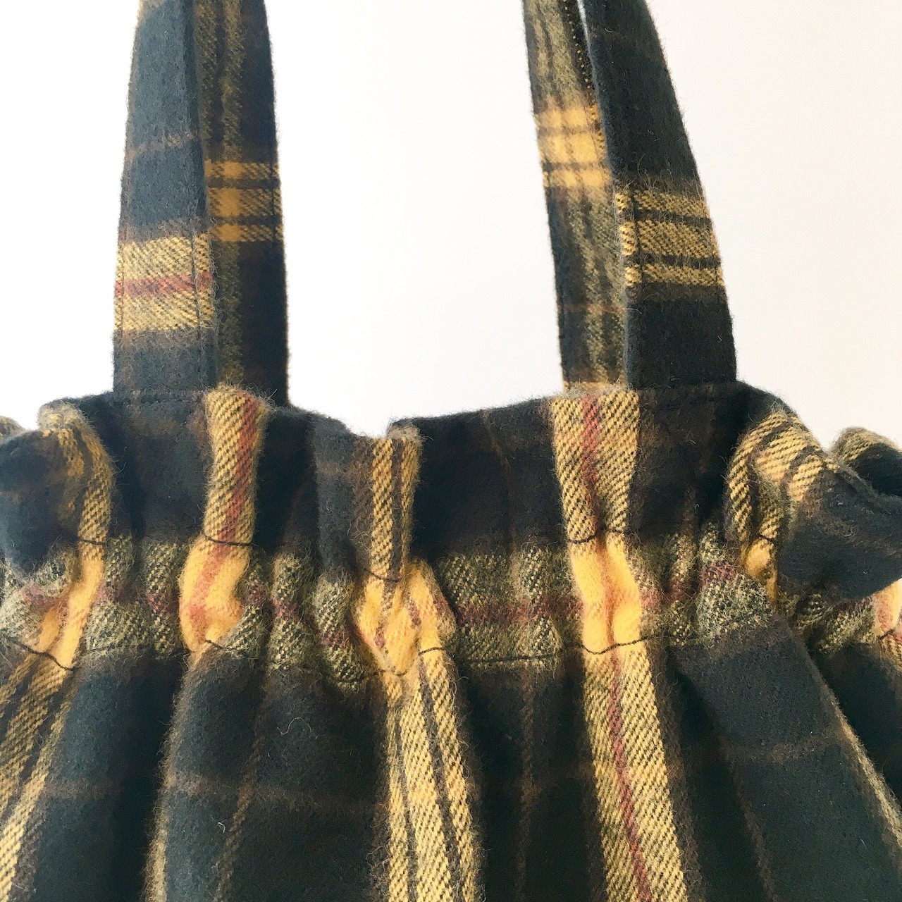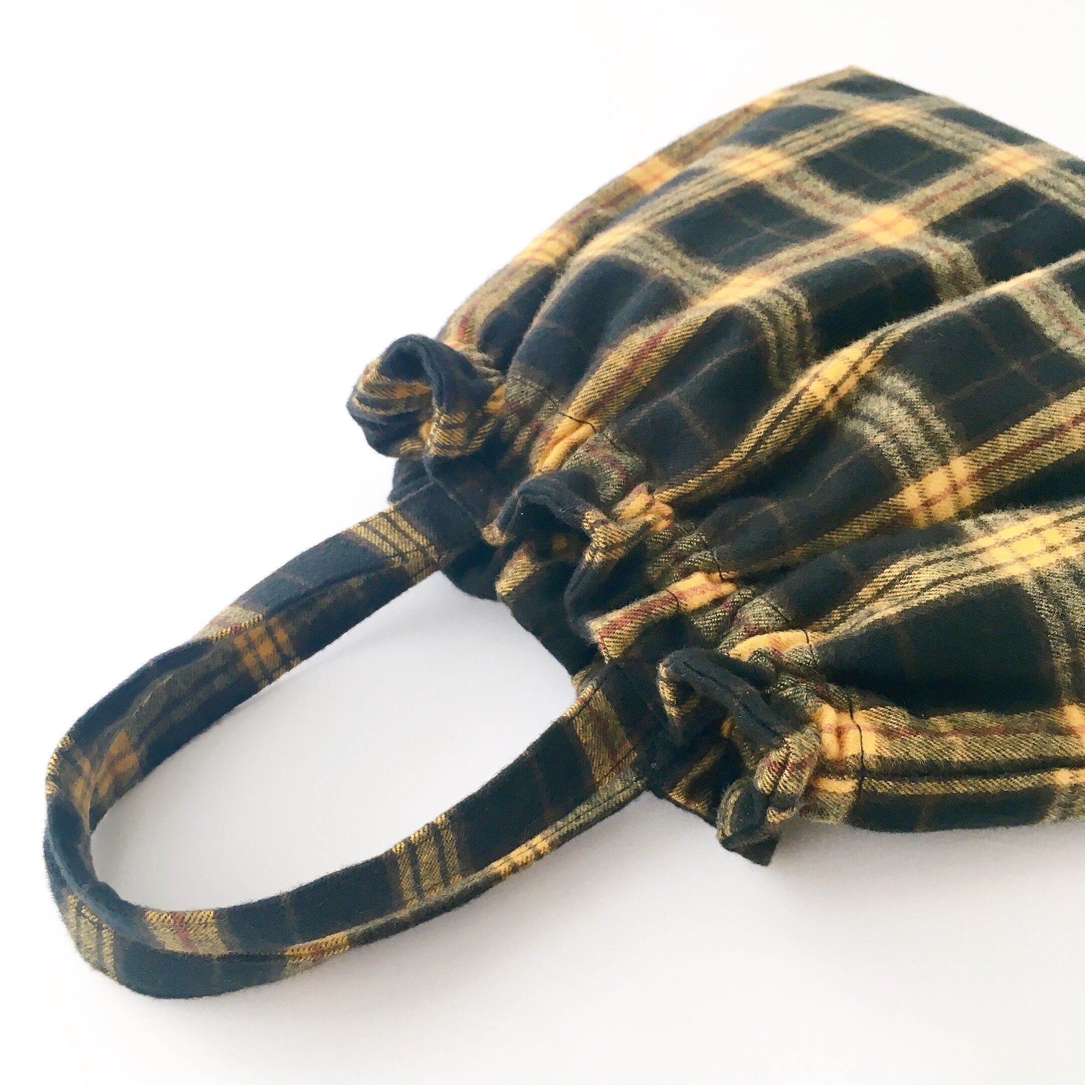 イエローのタータンチェックの生地を使用したバッグです⑅起毛がかった生地であたたかみあり秋冬のコーディネートにぴったりです。