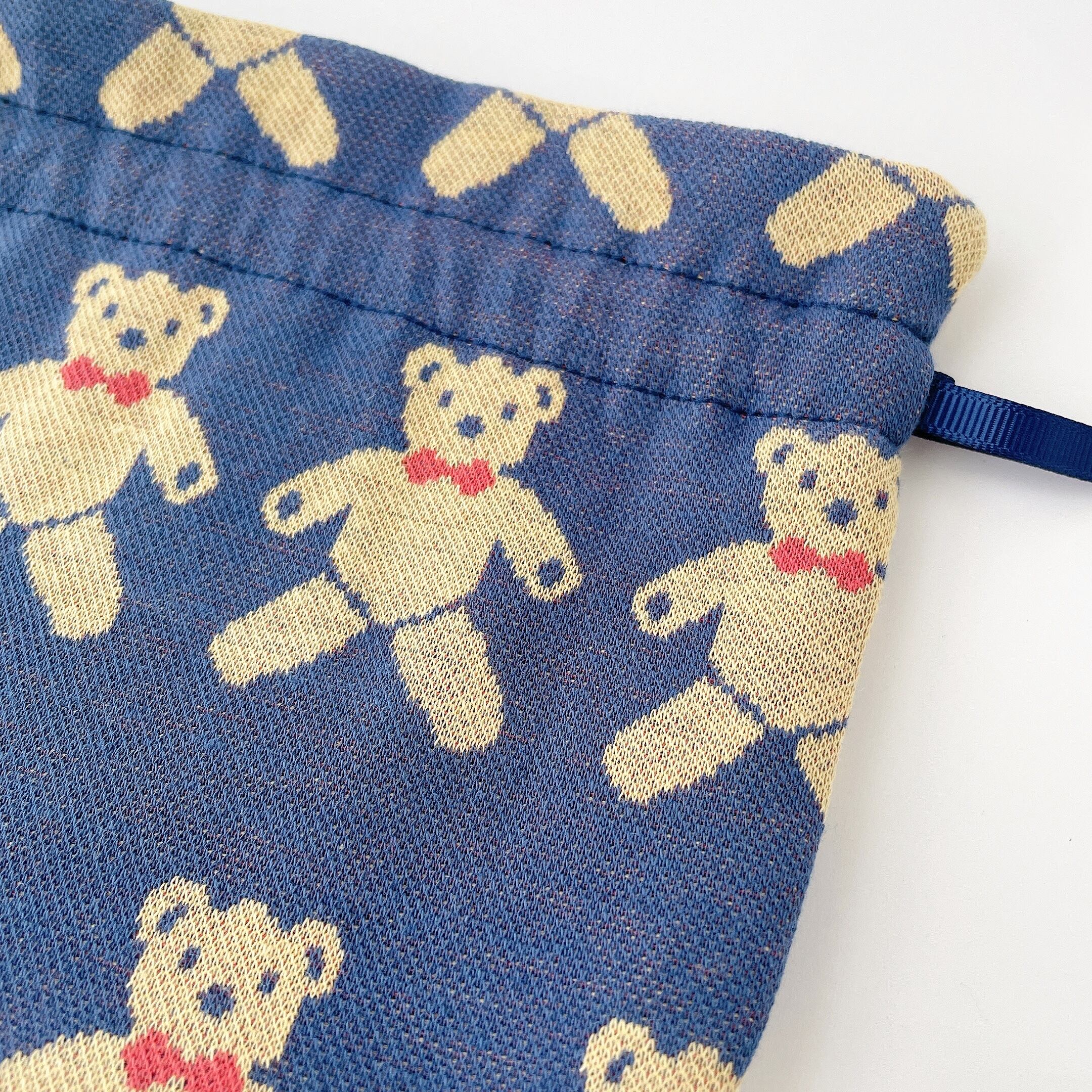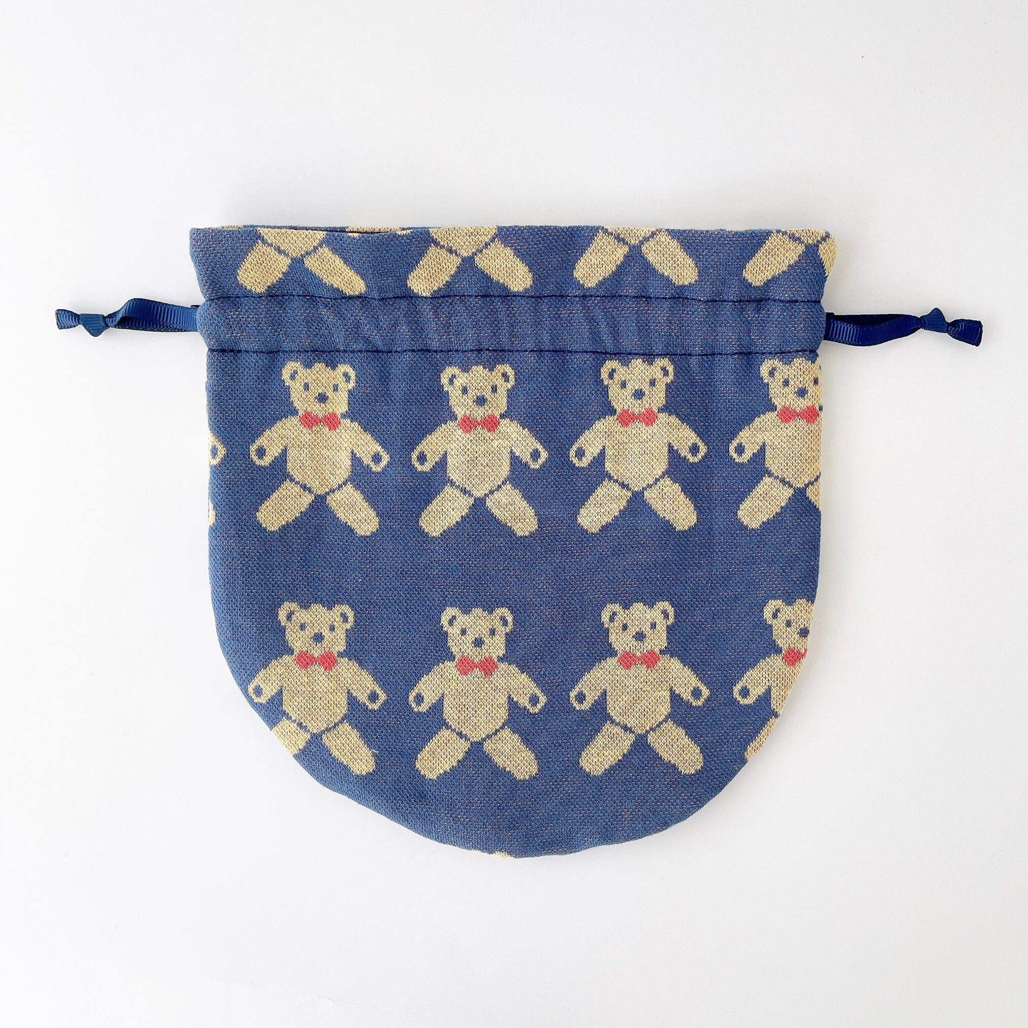 まる巾着【L】テディベア(ブルー)