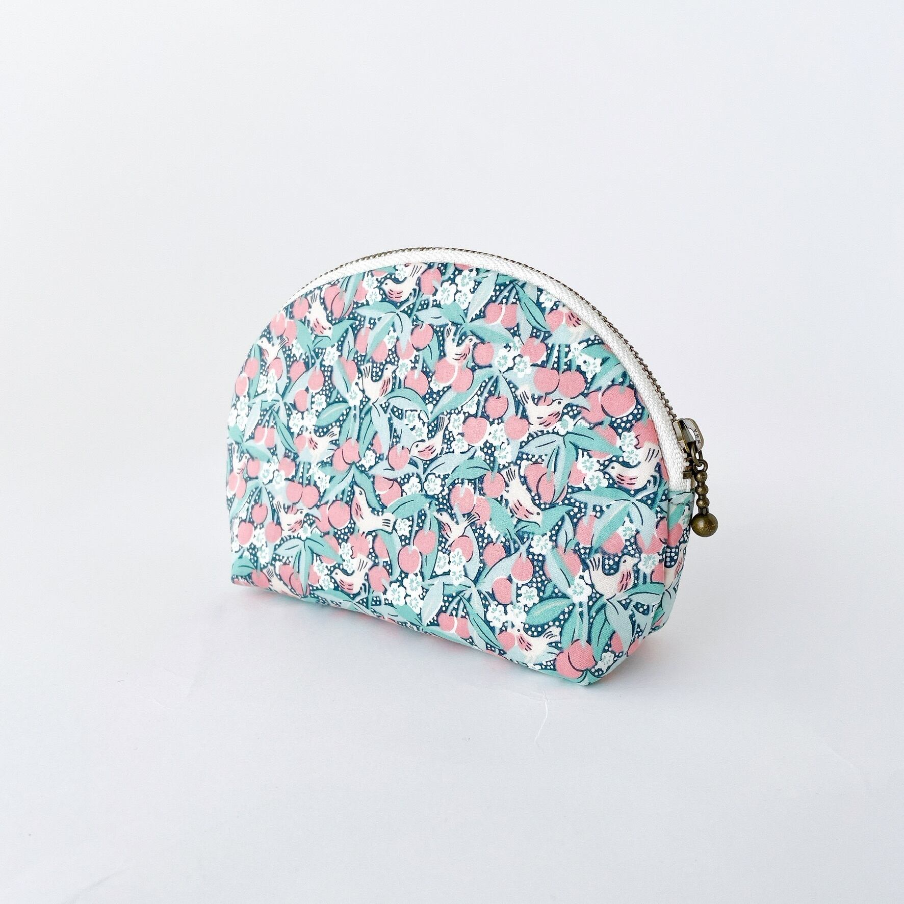 ファスナー部分が弧を描き、虹のようにアーチ状になっています。丸みのある形で優しい印象のポーチです。