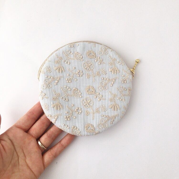 まんまるポーチ・フィールドオブフラワー(ミナ&チェックアンドストライプ)ブルー