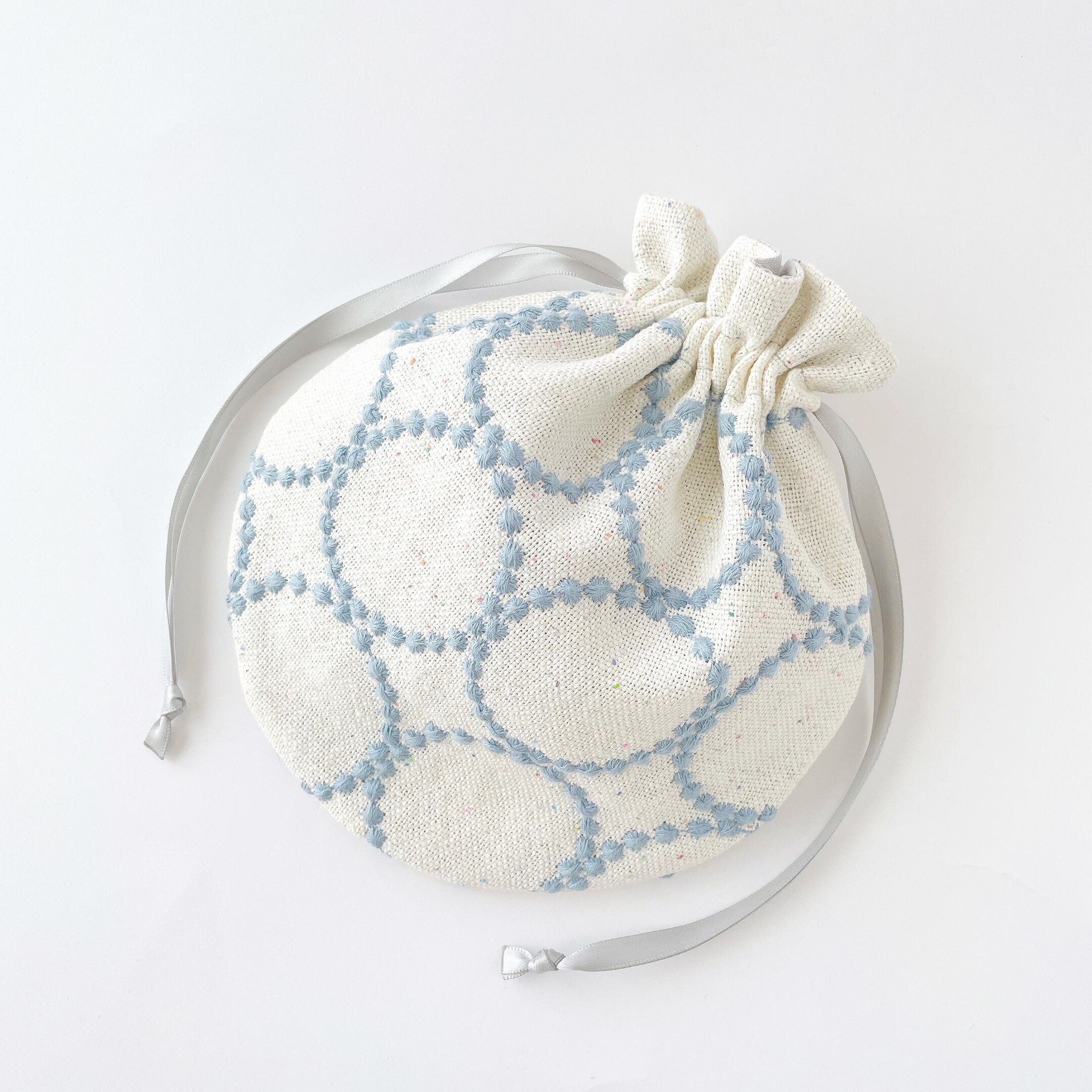 表地:刺繍部分はライトブルー/ベース生地はホワイト