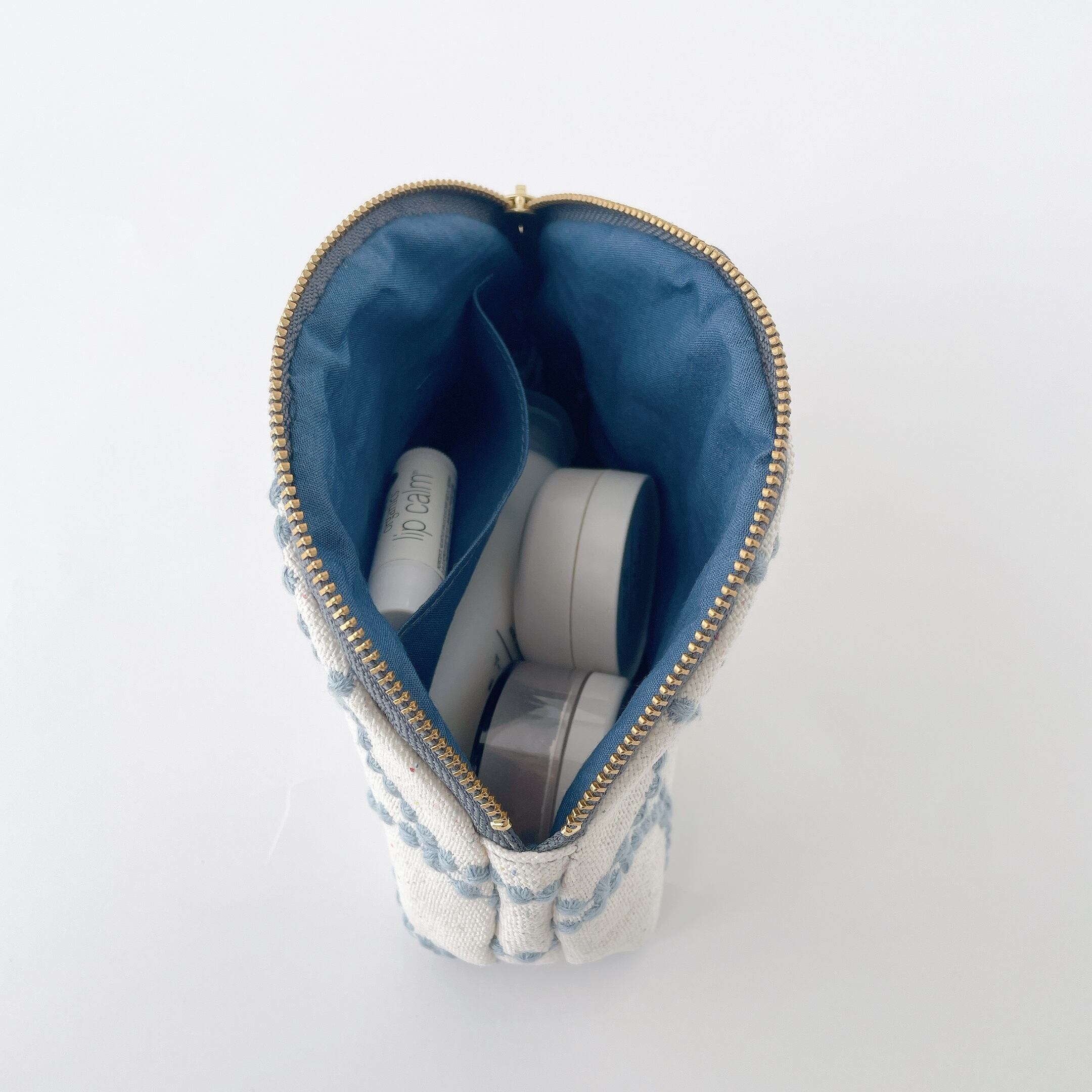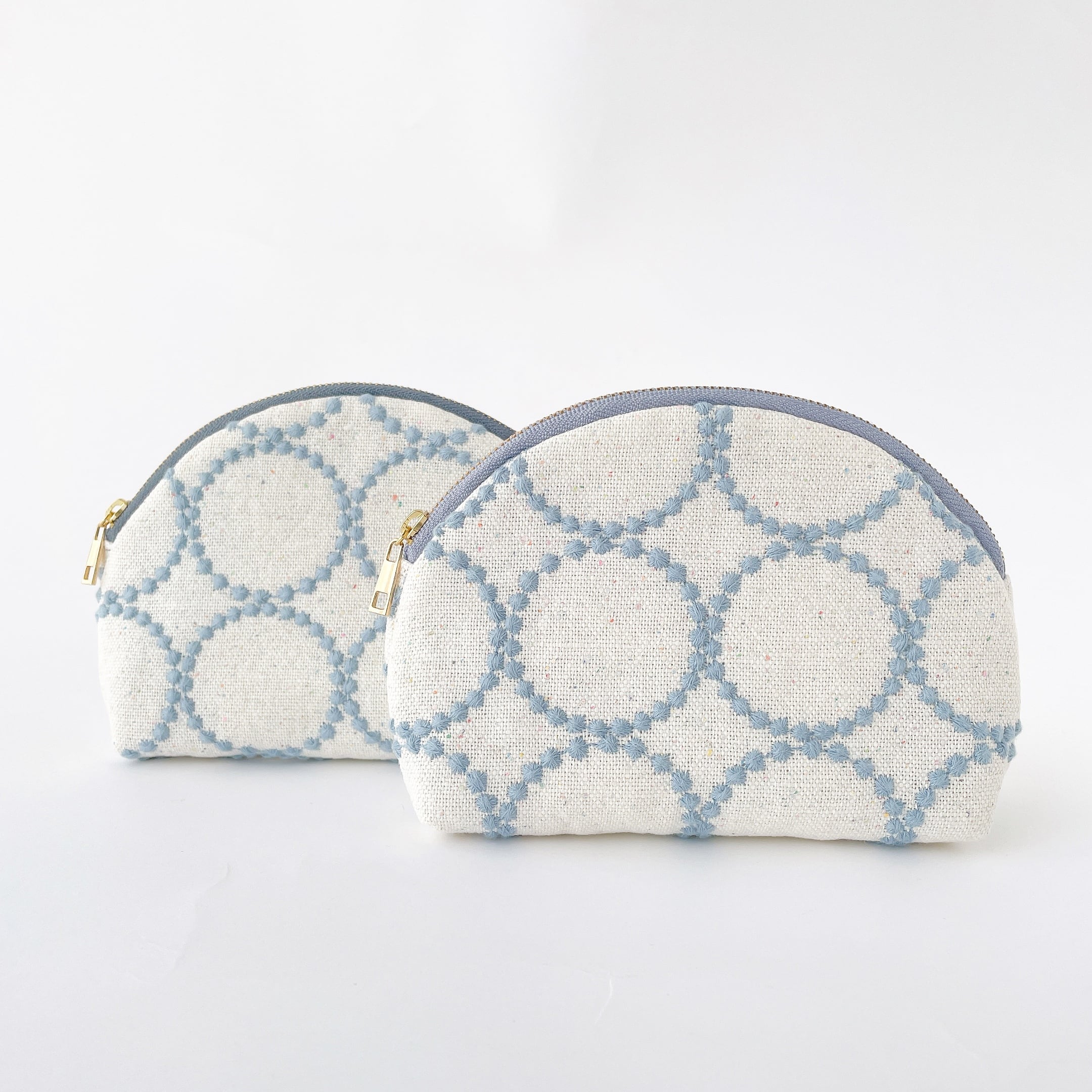 まる口ポーチ【L】タンバリン ホワイト×ライトブルー(ミナペルホネン)